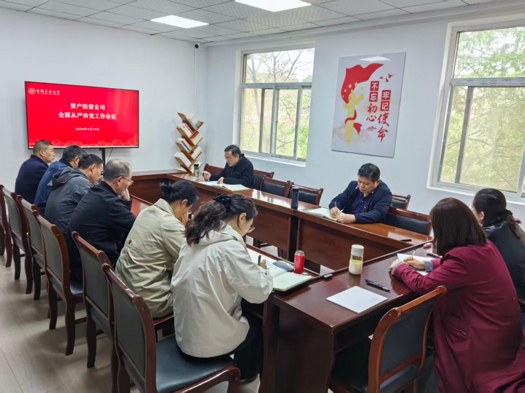 4月14日上午,资产经营公司召开2026年全面从严治党工作会议,深入学习贯彻二十届中央纪委五次全会的会议精神和省纪委十一届六次全会精神,落实2026年学校全面从严治党工作要点。资产经营公司全体职工出席会议,公司总经理何义主持会议。