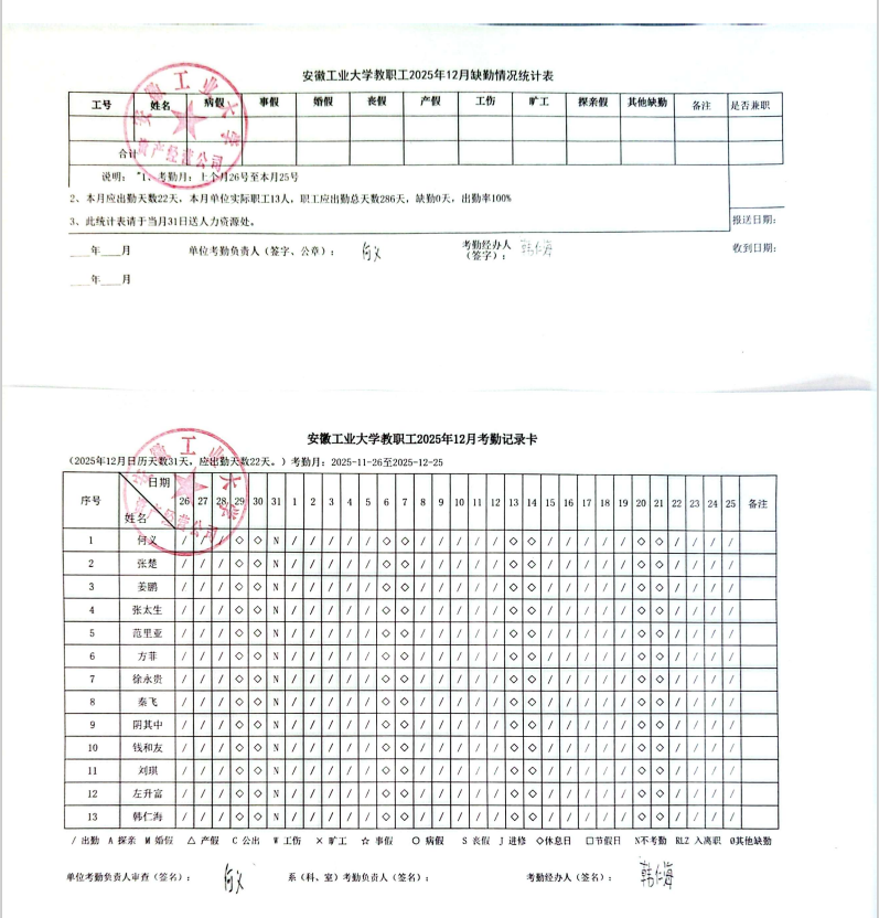 资产经营公司2025年12月考勤公示